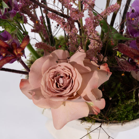 Amethyst | Purple Delphinium & Brown Roses Flower Arrangement