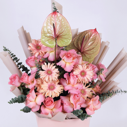 Rosbera | Pink Roses, Gerbera & Anthurium Bouquet
