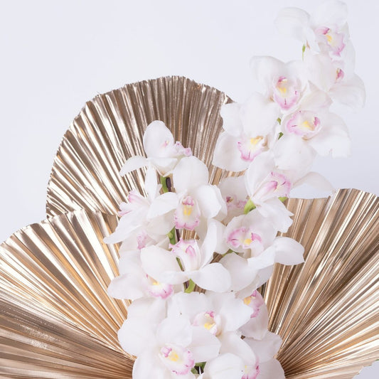 Stella | White Cymbidium Orchids & Golden Leaves