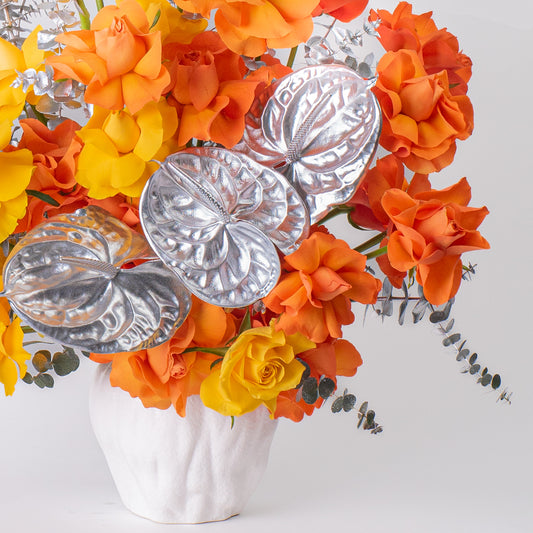 Golden Tower Roses: Epitomize luxury and grandeur, with stunning long-stemmed roses meticulously arranged in a towering display, accented with golden foliage. This creates a regal and opulent floral centerpiece, guaranteed to leave a lasting impression.
